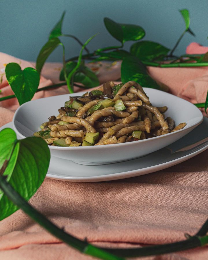 > FUSILLI AVELLINESI con zucchine e funghi, su crema di zucchine?